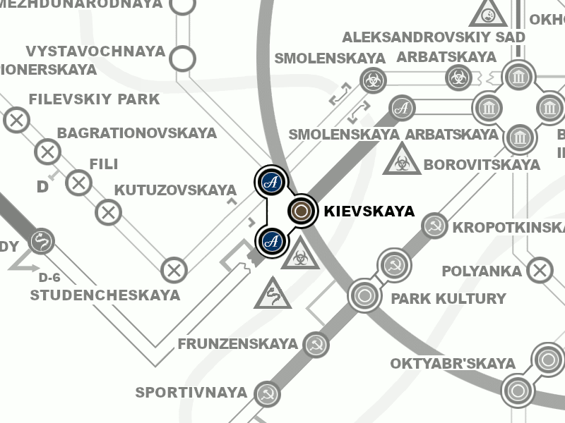 Kiewskaja (russisch: Киевская) ist eine Station, die südwestlich von der Polis liegt. Es ist eines der wenigen, dessen Rolle und Status sich bei der Übersetzung von Metro 2033 vom Roman zum Spiel erheblich verändert haben.