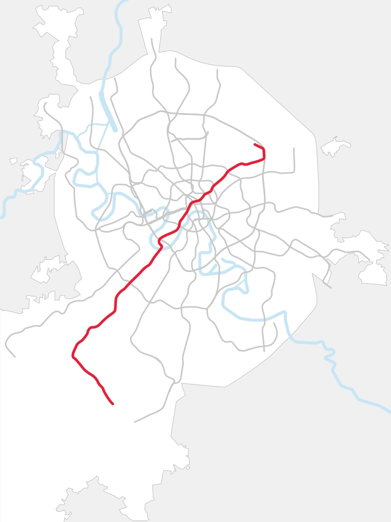 Als die Welt 2013 durch einen Atomkrieg zerstört wurde, war die Sokolnitscheskaja-Linie 26,5 km lang und hatte 19 Stationen. Es ist die älteste U-Bahn-Linie in Moskau. Es wurde am 15. Mai 1935 eröffnet. Seine Endstationen sind Ulitsa Podbel'skogo am nördlichen Ende und Yugo-Zapadnaya am südlichen Ende.
