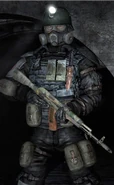 Il existe deux types de soldats dans Metro 2033 : standard et légèrement équipés. Les soldats standard ont un losange bleu horizontal avec une bordure dorée et un "C" doré au centre sur la manche de leur veste. Il peut s'agir d'éclaireurs, d'ingénieurs ou de nouvelles recrues. L'infanterie lourde est apparue dans le jeu Metro : Last Light. Composé de combattants expérimentés et réfléchis, et sont donc des troupes d'élite.
