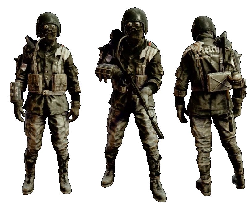 L'infanterie du IVe Reich est elle-même divisée par tâche comme Stalkers, éclaireurs, soldats ordinaires, infanterie lourde ou Gestapo.