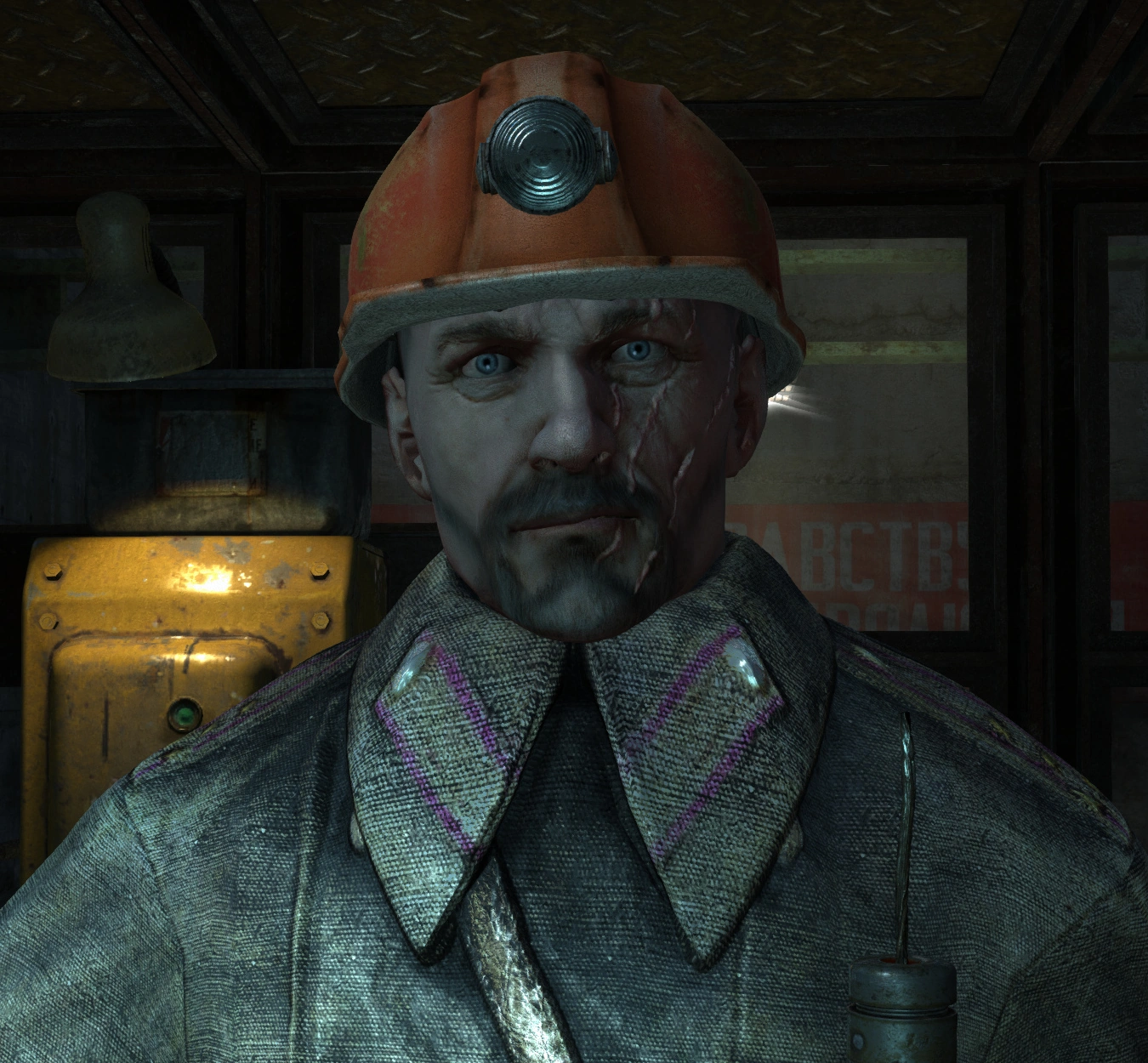 - Озвучен тремя разными актёрами: Олегом Стальчуком (приказ о проверке электричества), Анатолием Богушем (при сдаче игроку) и Иваном Розиным (при открытии ворот).