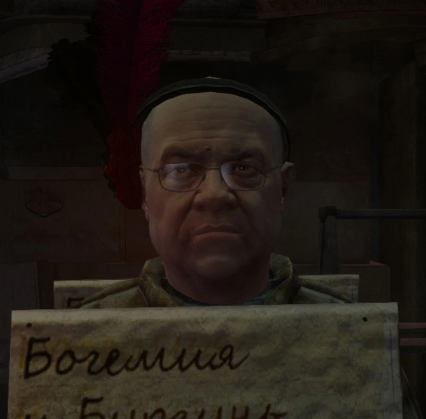 - По непонятной причине из игры была вырезана его вступительная речь. Её текст[4] сохранился в файлах локализации.