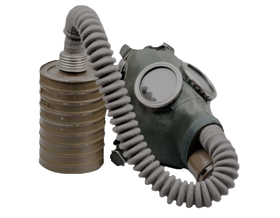 Советская защитная маска, самая распространённая на постсоветской территории как до, так и после Третьей мировой войны. «Зелёный слоник» — последняя модель гражданских противогазов СССР с шлангом-«хоботом».