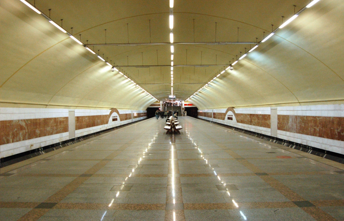 Над платформами расположены люминесцентные светильники на облегченных алюминиевых подвесах. Свод окрашен в жёлтый цвет, пол выложен из серого гранита с расшивками из красного и вставками габбро.