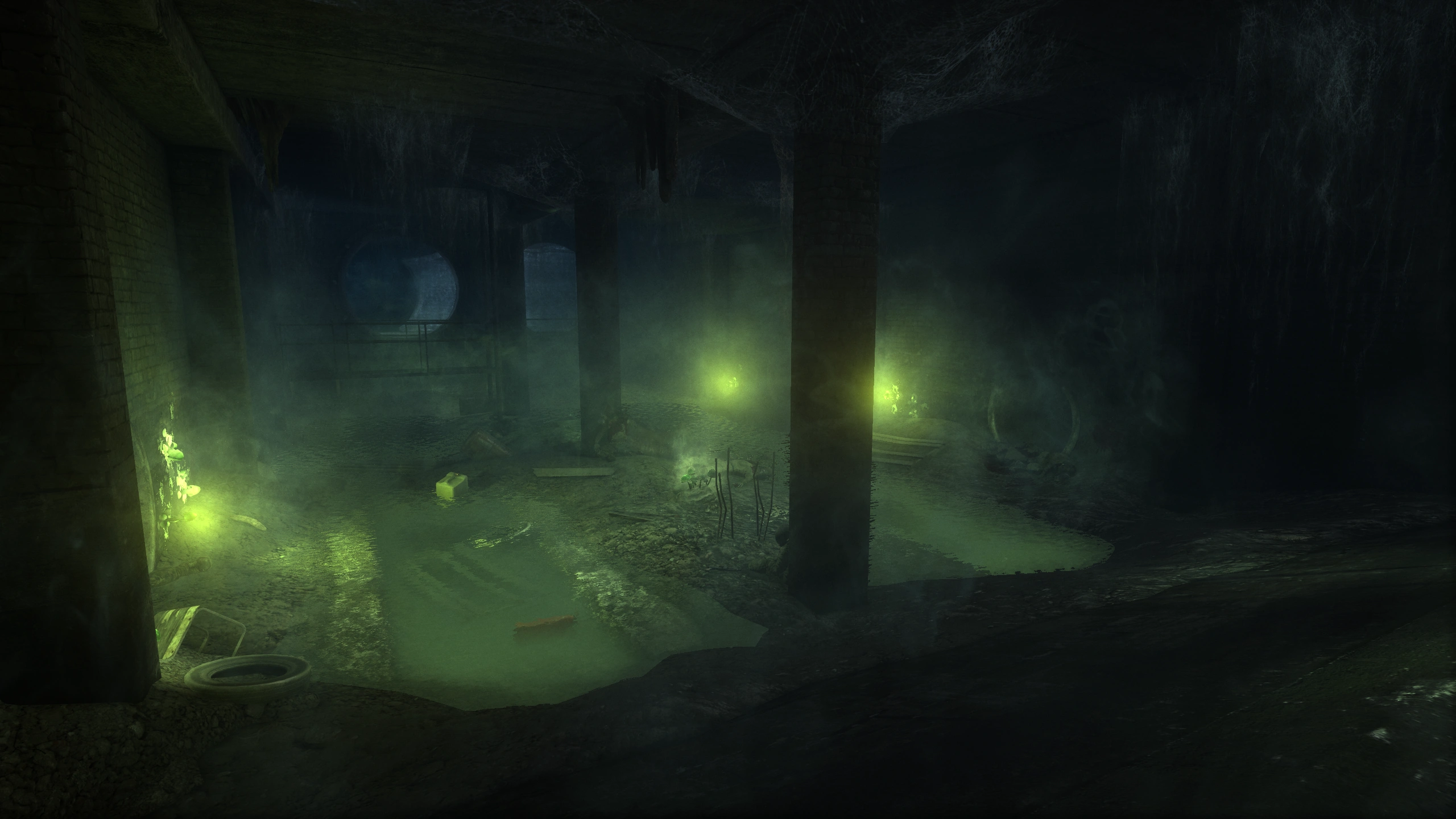 Коллектор, в который попадают Артём с Бурбоном после метромоста, выходит в тёмное просторное помещение, по-видимому, являющееся канализационным приёмником, так как в него выходят и другие многочисленные канализационные коллекторы. На полу кучи мусора, лужи зловонной жижи, источающие зелёный смрад, повсюду лежат трупы задохнувшихся людей. Дальше за решётчатой дверью приёмника идут старые кирпичные коллекторы. В одном из ответвлений справа есть вход в вентиляционную шахту с растущими с потолка корнями.