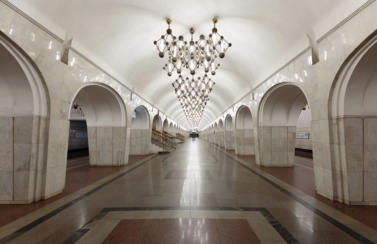 Из-за постоянного затопления мраморные плиты поотваливались от стен, а кристаллы-светильники давно потухли. Арки проходов завешаны тряпками и пластиком. Станция погружена в полумрак и туман, освещается лишь коптящими жировыми плошками.[1]