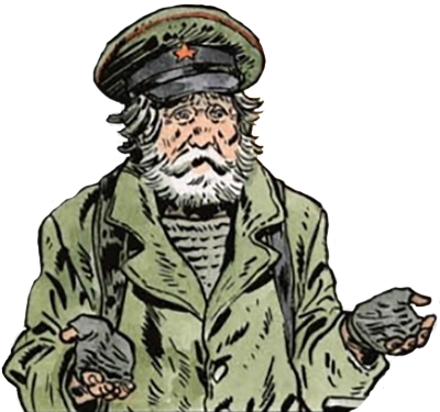 Старый житель Конфедерации 1905 года, болтливый интеллигент. Член литературно-политического кружка. Испытывает проблемы с сердцем. Опекун недоразвитого мальчика по имени Ванечка. Атеист. Одинаково недолюбливает как фашистов, так и красных, по той причине, что его отца репрессировали за подозрительное имя во времена СССР. До Войны жил в высотке рядом со станцией Баррикадная.