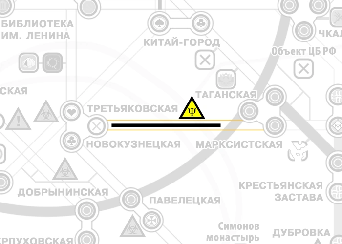 Смертельно опасный тоннель между станциями Третьяковская и Марксистская Московского метрополитена , откуда мало кто мог вернуться. Здесь находится самая опасная в метро аномалия, время от время появляется густой чёрный туман, отключающий электричество, а впитывающая звуки тишина создаёт у человека чувство, будто тоннель начинал сужаться и поглощать его. В границах тоннеля обитают клыканы — мутанты с когтистыми лапами и голой кожей. От них можно спастись только на хорошо бронированном транспорте, притворившись мёртвым.