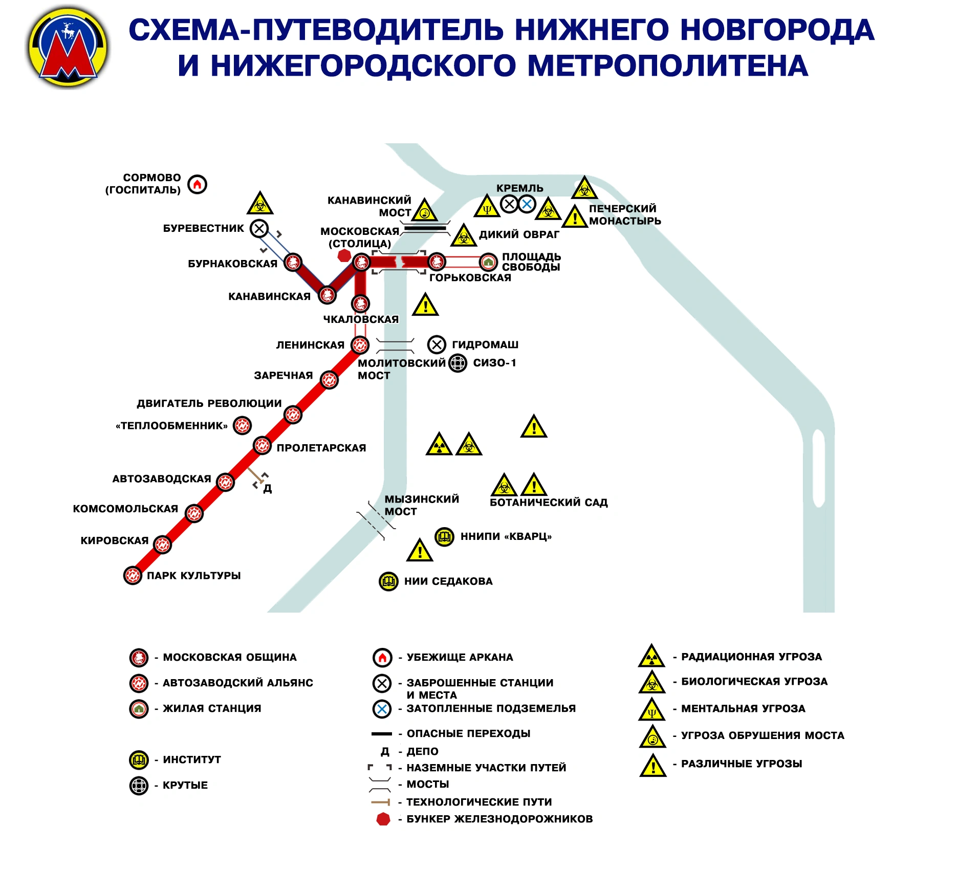 Нижегородский метрополитен стал главным убежищем для выживших, со временем разделившись на два крупных враждующих государства, занимающих разные ветки: