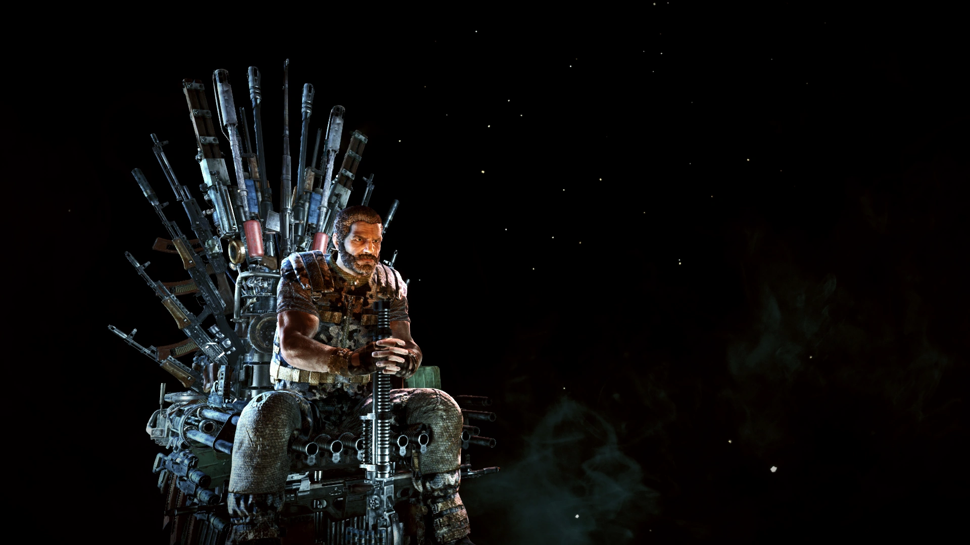 - На скриншоте достижения Мельник сидит на троне из оружия. Это отсылка на сериал «Игра престолов».