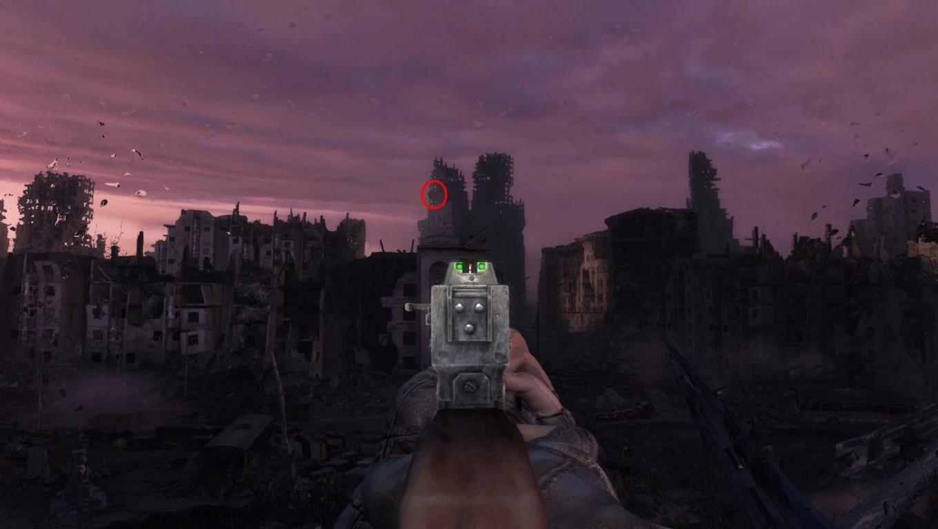 - Можно увидеть здание с аркой, взятое прямиком из Metro 2033. Внутри него находятся спрайтовые текстуры зданий и других объектов уровня.