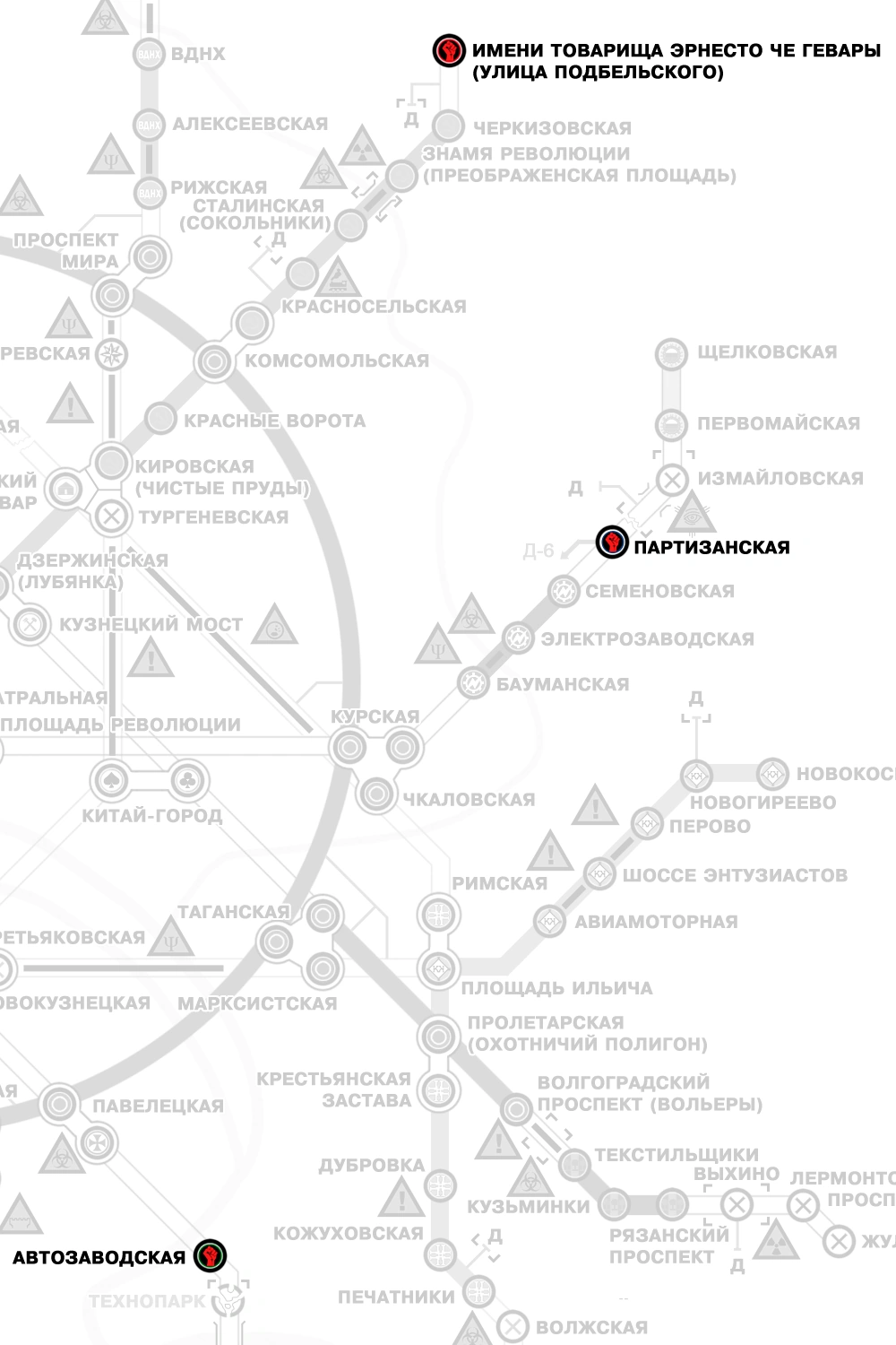 | Организации | Содружество станций Кольцевой линии (Армия Ганзы) • Красная Линия • Полис • Сталкеры • Изумрудный город • Орден | |