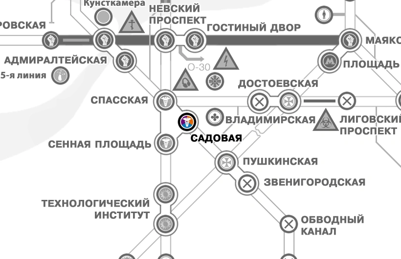 Как и на всех станциях Торгового города, на «Садовой» непрерывно функционирует один из самых крупных в Метро рынков. Здесь в ход идёт всё: патроны, таблетки, батарейки и любые другие предметы первой необходимости. Стоимость проживания в местной гостинице намного дешевле, чем на «Сенной» или «Спасской», однако местные номера уступают своим низким качеством и полным отсутствием личного пространства[1].
