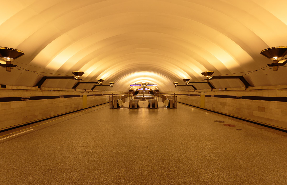 Ничем не примечательная на первый взгляд, Спортивная представляет из себя крайне необычное место в подземном Петербурге. Помимо того, что она прилегает к так и не достроенной до конца Кольцевой линии, станция имеет два расположенных друг под другом зала, совершенно не похожих друг на друга.