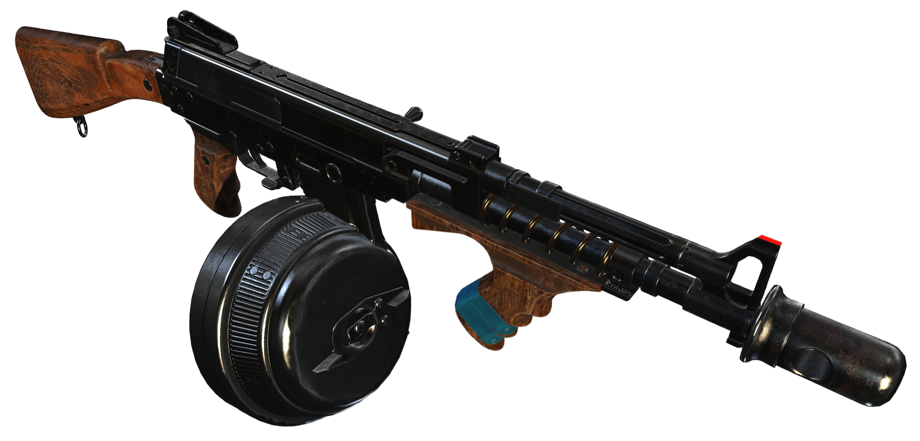 Магазин повышенной вместимости, специально разработанный под эту модель оружия. Очень тяжёл (что очень плохо сказывается на устойчивости при прицеливании и точности), но вмещает до 100 стандартных или зажигательных патронов.