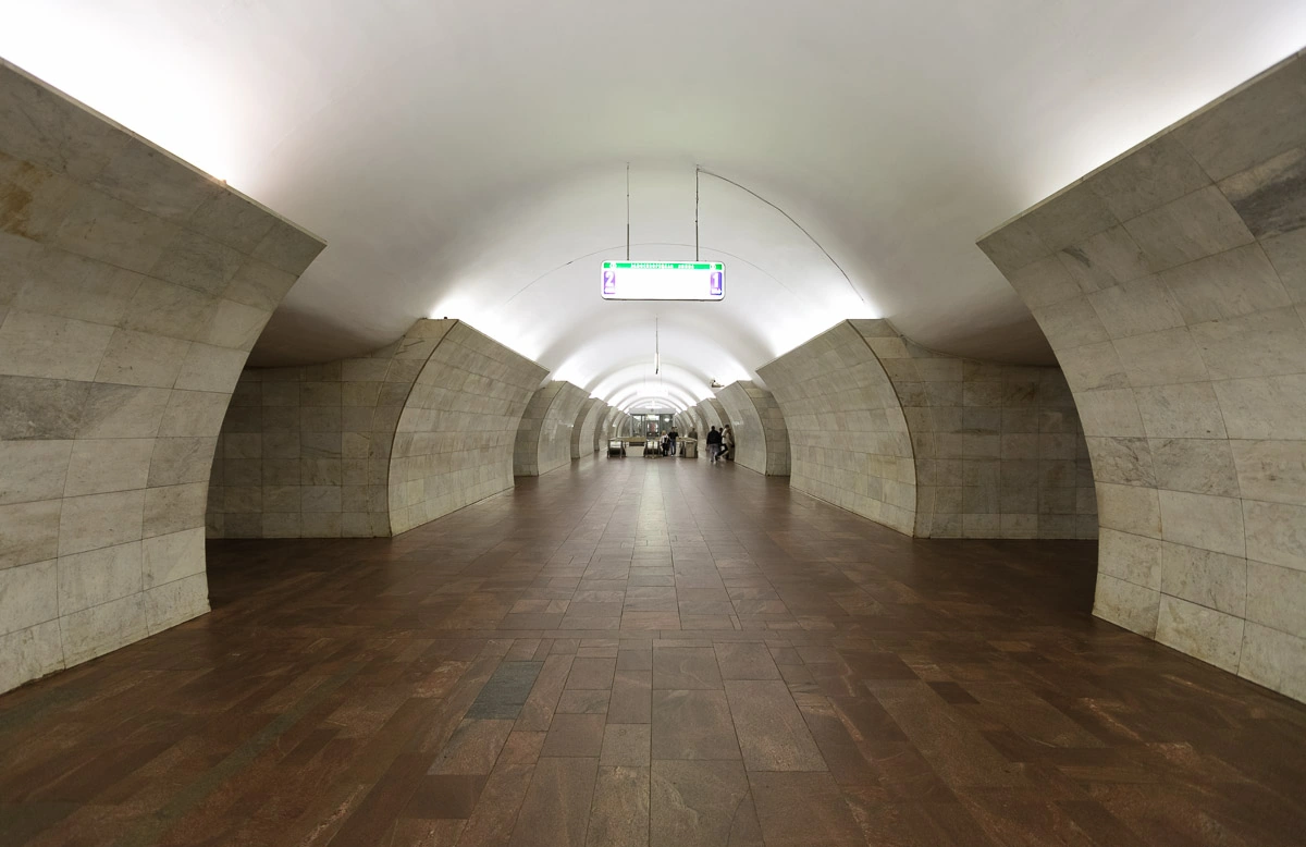 Освещение на станции было скудным, в основном за счёт сальных свечей, установленных в массивных железных люстрах. Стены и колонны испещрены символикой (орлами и трёхконечными свастиками), агитплакатами и пропагандистскими лозунгами Рейха. В тоннеле к «Театральной» имелась специальная платформа для проведения публичных казней.[5]