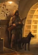 В приложении его зовут полным именем и у него есть ручной пёс.