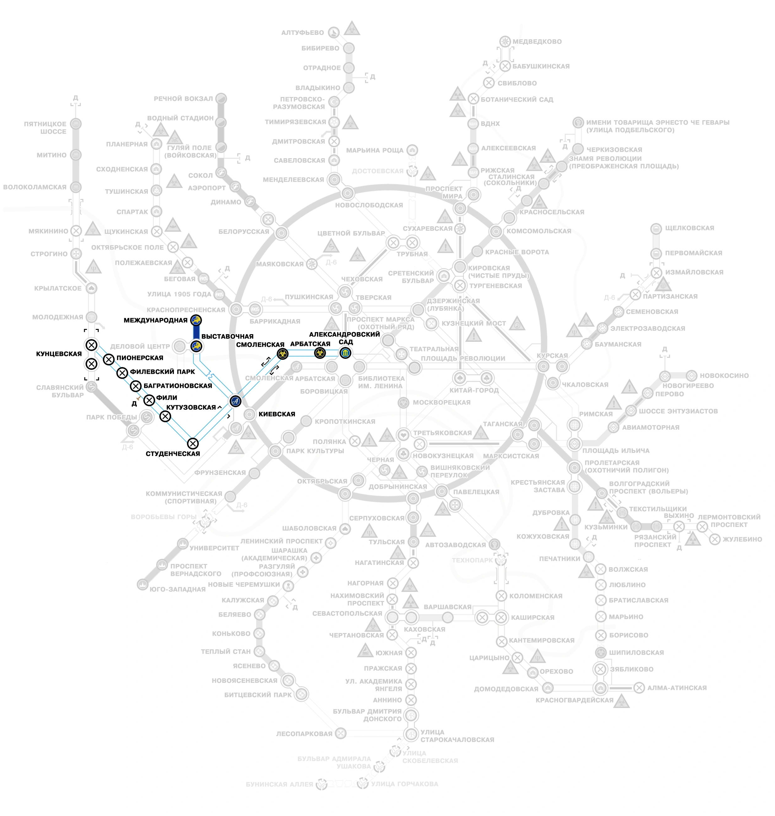 Смоленская — логово стражей, после 2035 года — заброшена;