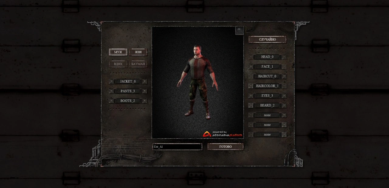 Перед началом игры игроку требовалось создать своего персонажа — придумать ему имя, выбрать пол, стартовую локацию (Содружество ВДНХ или Бауманский альянс), базовую одежду (куртка, штаны, обувь) и настроить лицо: голову, тип и цвет причёски, глаз, бороды, добавить шрамы и татуировки по бокам. Изначально управление камерой было свободное, но после обновлений в сентябре 2012 года она прикрепилась к игроку[2].
